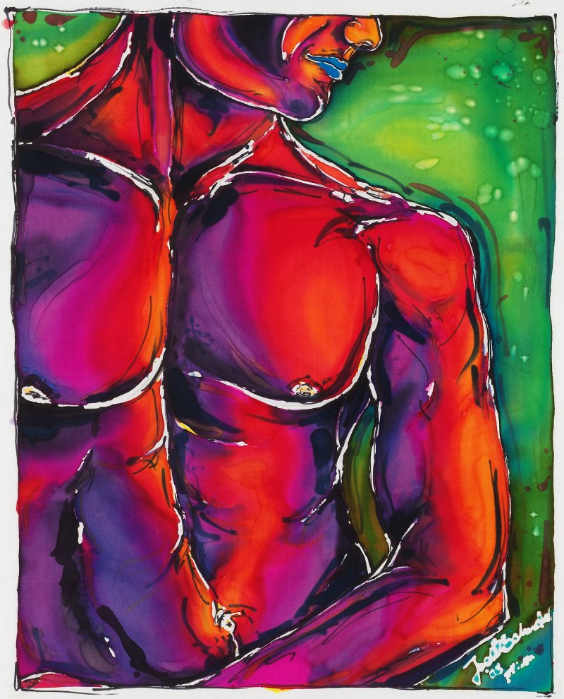 | | Emotional ausdrucksstarke Aktbilder auf reiner Seide, gemalt mich speziellen Seidenfarben. Diese gegenständliche Kunst wird in kräftigen harmonisch aufeinander abgestimmten Farben dargestellt. |